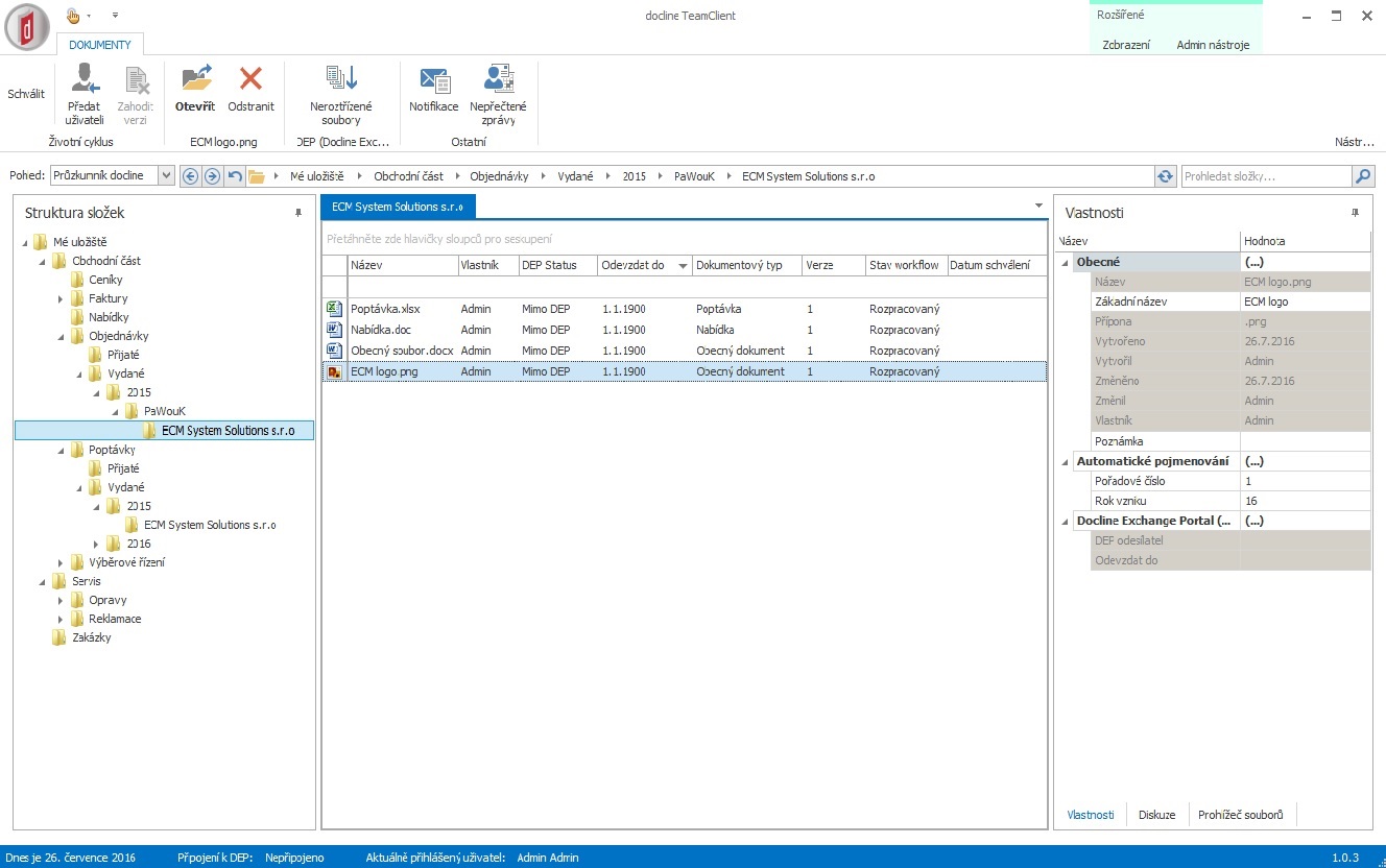 Systém dokáže spravovať tieto dokumenty počas celého ich životného cyklu. Snaží sa ponúknuť všetko, čo potrebujete: nastavenie štruktúry adresárov, štandardizáciu prostredníctvom akýchsi dokumentových typov s vlastnými šablónami, metadátami, riadené prístupy pomocou práv a rolí, cez automatické pomenovávanie až po riadené workflow.